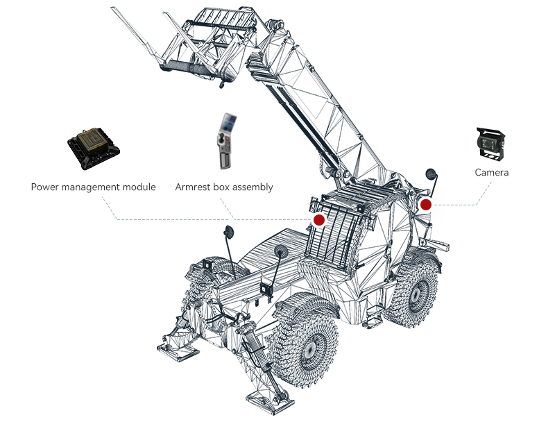 The electric control system of the telescopic forklift integrates functions such as vehicle information display, fault prompt, video monitoring, facial recognition, and one click start, significantly improving the sense of technology and usability.By removing the electrical control cabinet through electrical optimization, safer and more reliable intelligent control has been achieved, and the layout of the cab has been simplified, expanding range of visibility.Supporting OTA remote upgrade and APP interconnection enhances system flexibility. Suitable for material handling and loading and unloading in agricultural and forestry farms and Stone material factory, providing a safe, efficient, and convenient operating experience for various scenarios.
